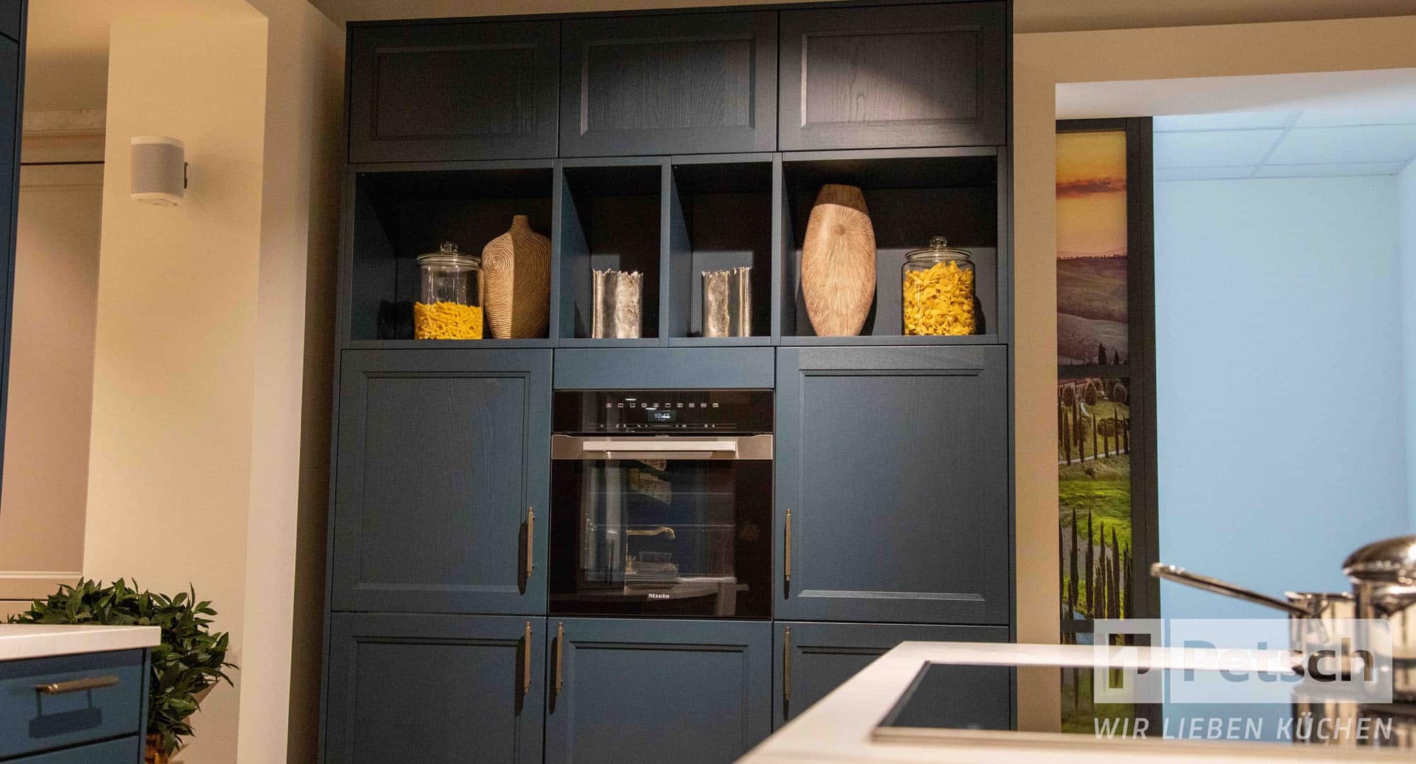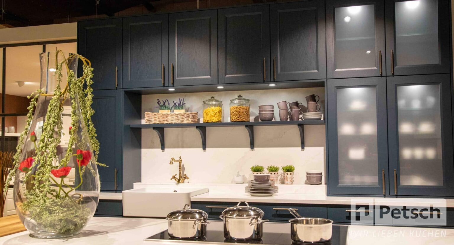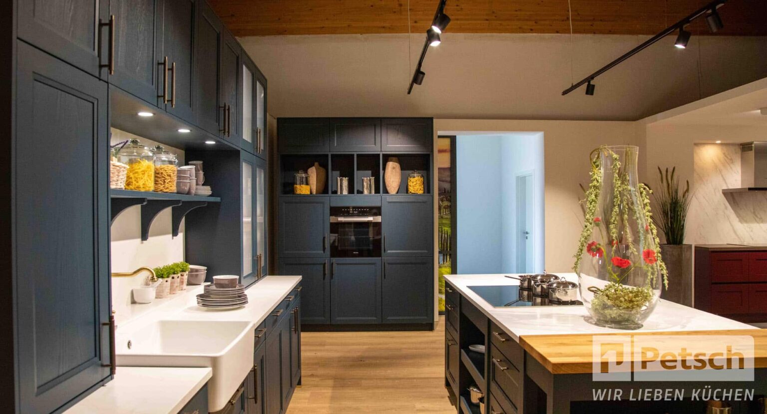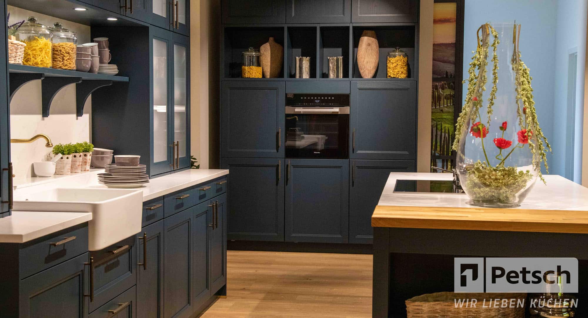 Diese blaue Landhausküche aus dem Hause Schüller vereint den nordischen Landhausstil mit modernen Elementen. Oder anders gesagt: Wohlfühlen kombiniert mit einem modernen Design. Diese wunderbare Küche ist dabei aus drei Bereichen aufgebaut, einer Küchenzeile, eine Kücheninsel und einem Wandschrank. Letzterer beherbergt neben einem modernen Backofen auch noch einen Kühlschrank, sowie zusätzlichen Stauraum. Eine Besonderheit findet…