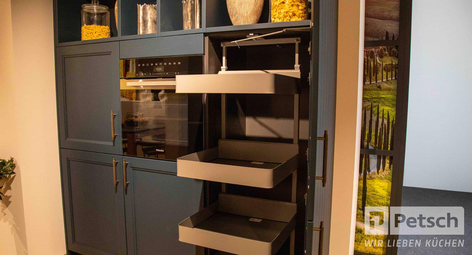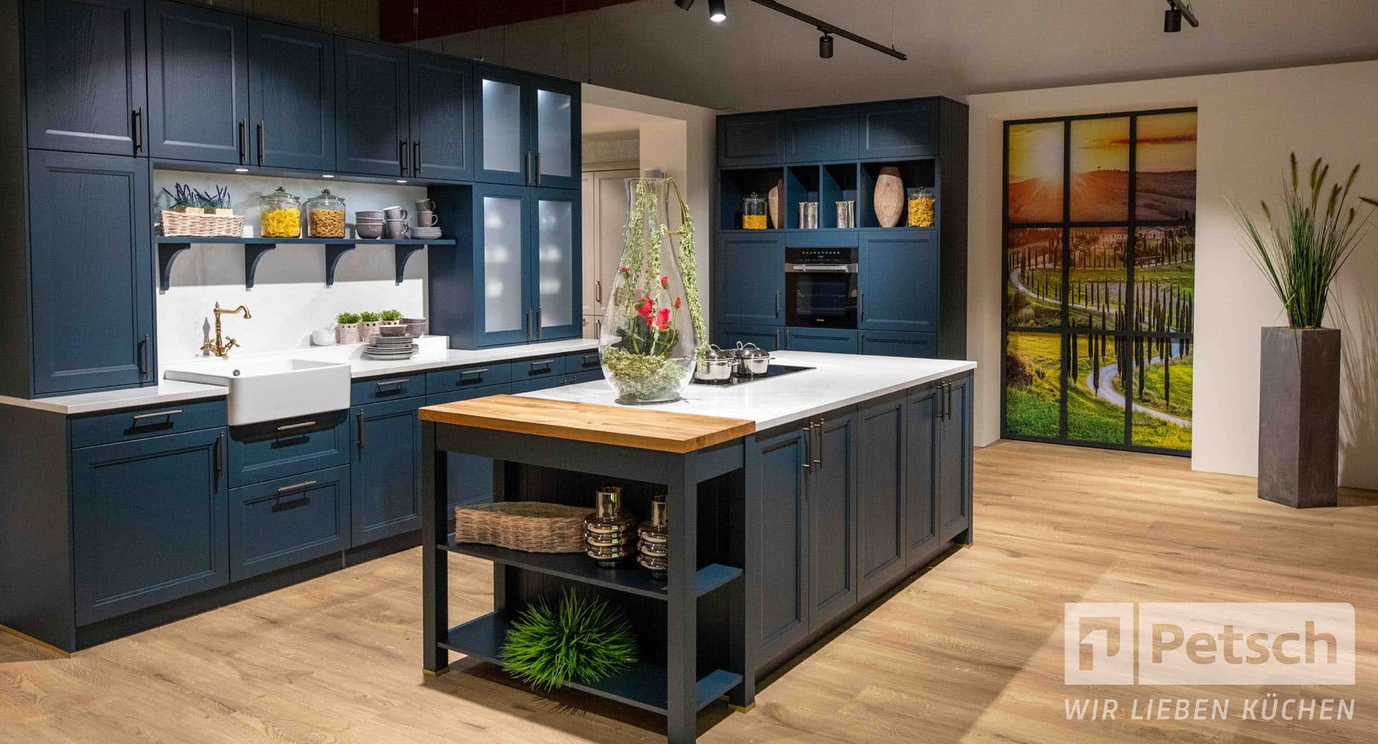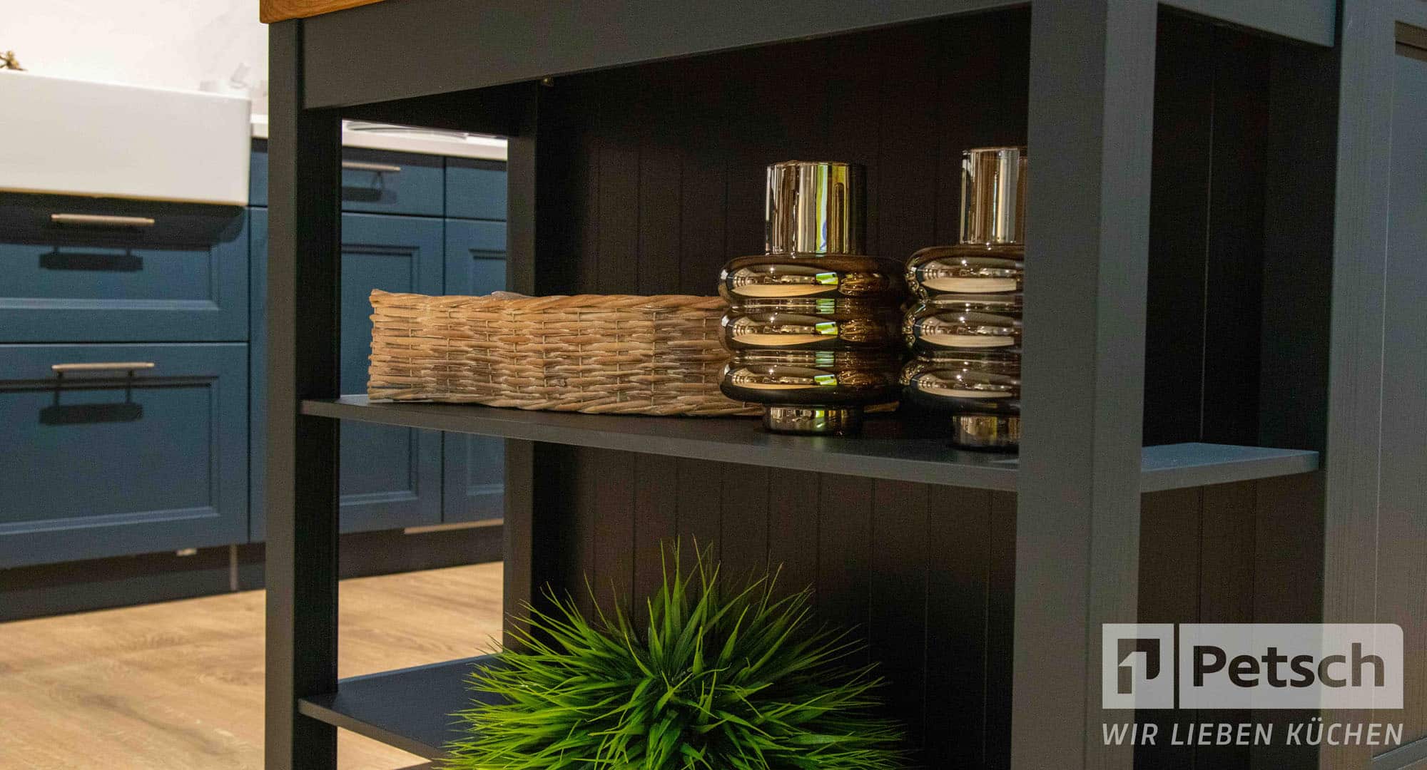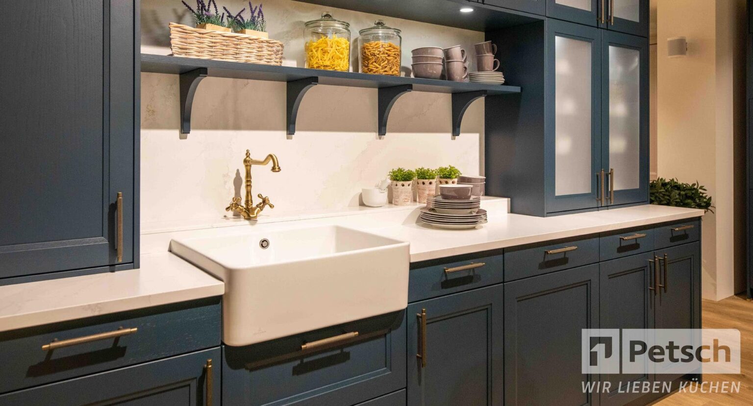 Diese blaue Landhausküche aus dem Hause Schüller vereint den nordischen Landhausstil mit modernen Elementen. Oder anders gesagt: Wohlfühlen kombiniert mit einem modernen Design. Diese wunderbare Küche ist dabei aus drei Bereichen aufgebaut, einer Küchenzeile, eine Kücheninsel und einem Wandschrank. Letzterer beherbergt neben einem modernen Backofen auch noch einen Kühlschrank, sowie zusätzlichen Stauraum. Eine Besonderheit findet…