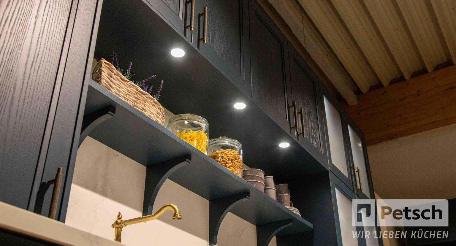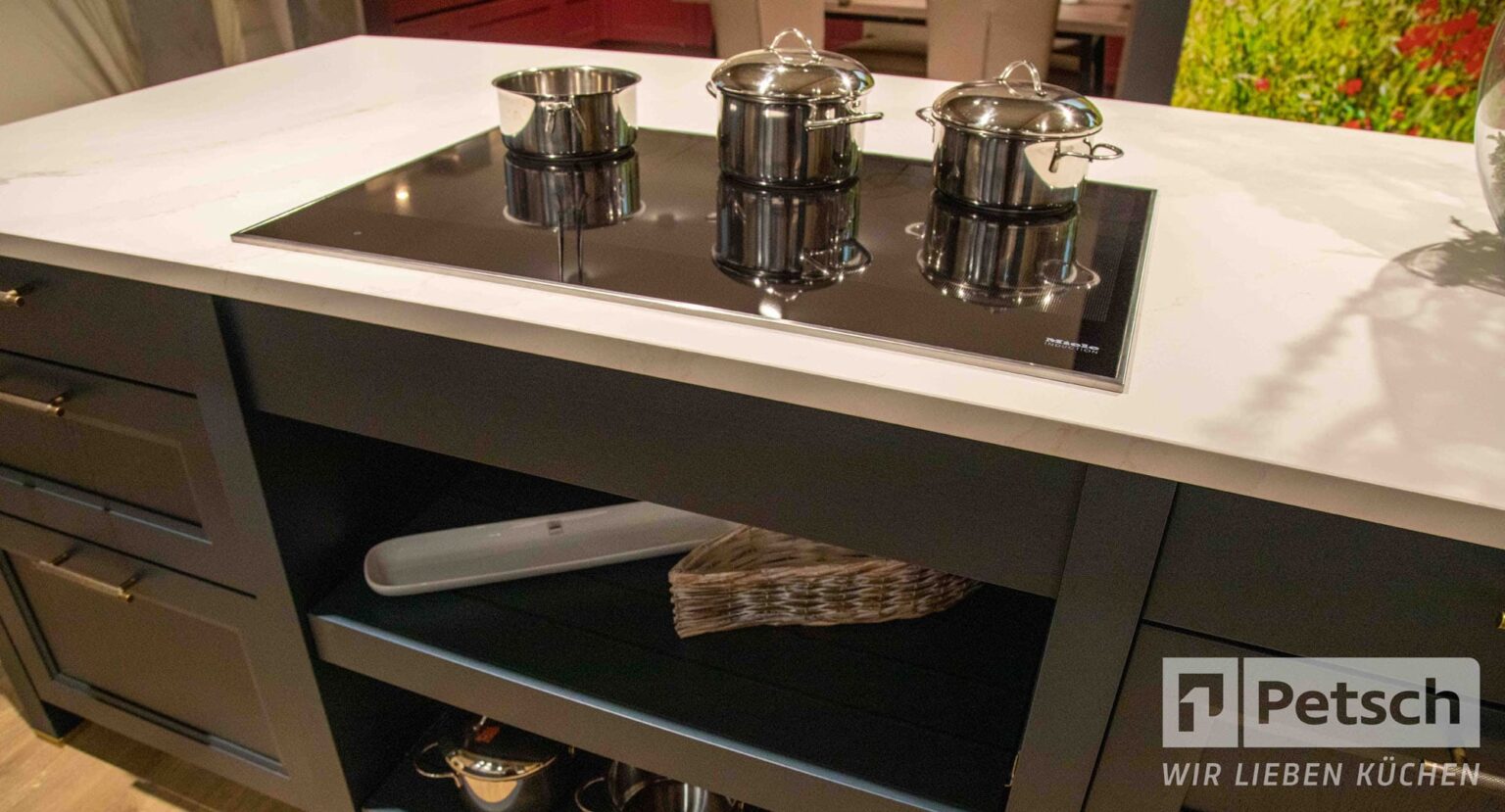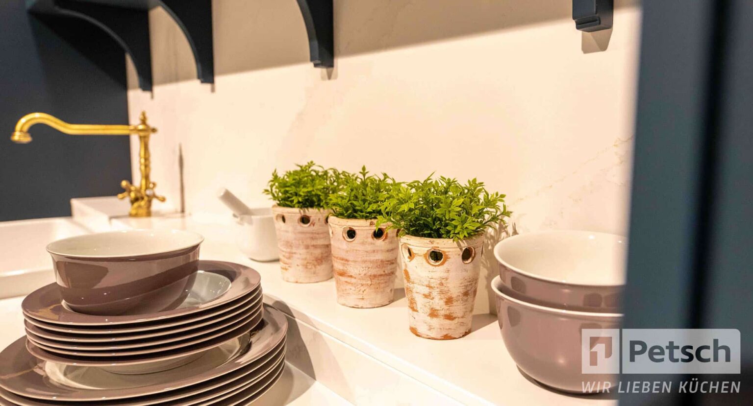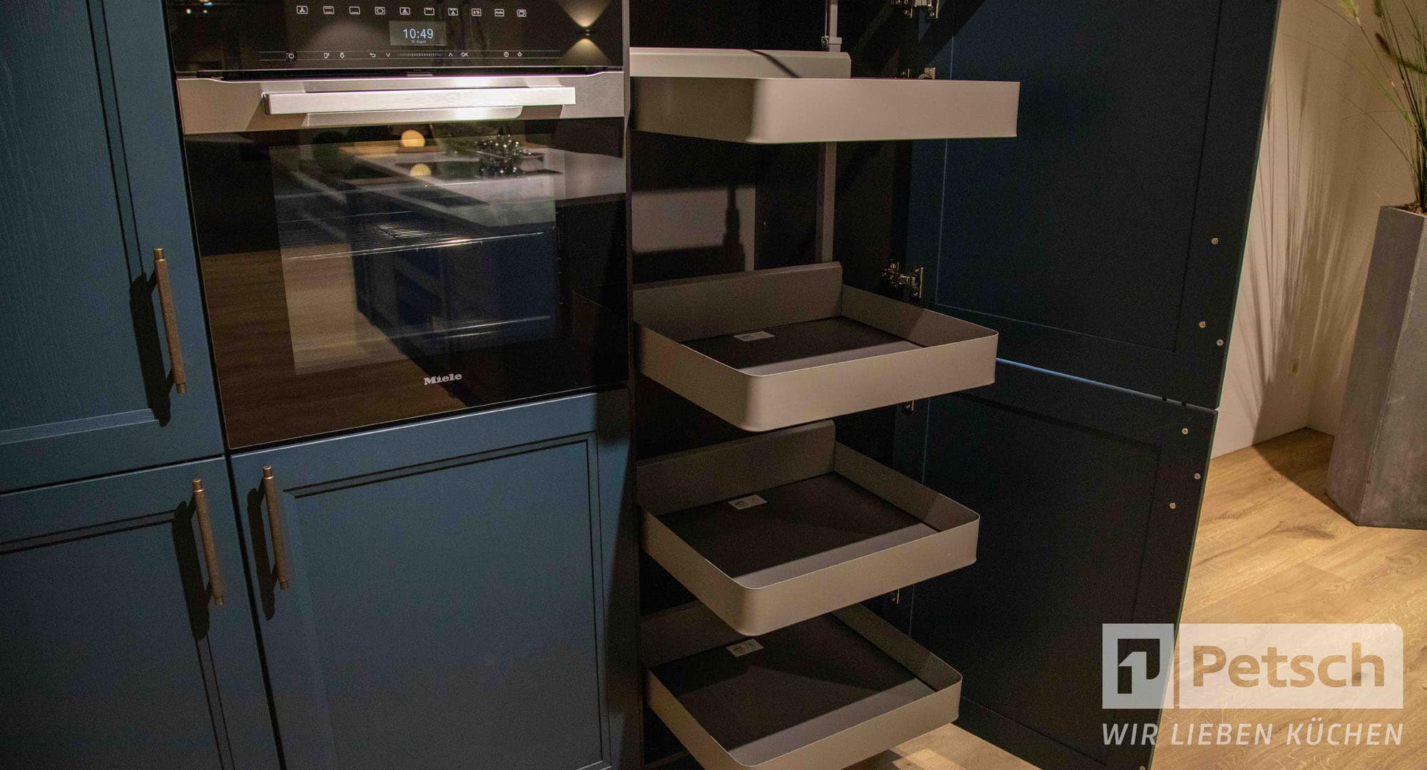 Diese blaue Landhausküche aus dem Hause Schüller vereint den nordischen Landhausstil mit modernen Elementen. Oder anders gesagt: Wohlfühlen kombiniert mit einem modernen Design. Diese wunderbare Küche ist dabei aus drei Bereichen aufgebaut, einer Küchenzeile, eine Kücheninsel und einem Wandschrank. Letzterer beherbergt neben einem modernen Backofen auch noch einen Kühlschrank, sowie zusätzlichen Stauraum. Eine Besonderheit findet…