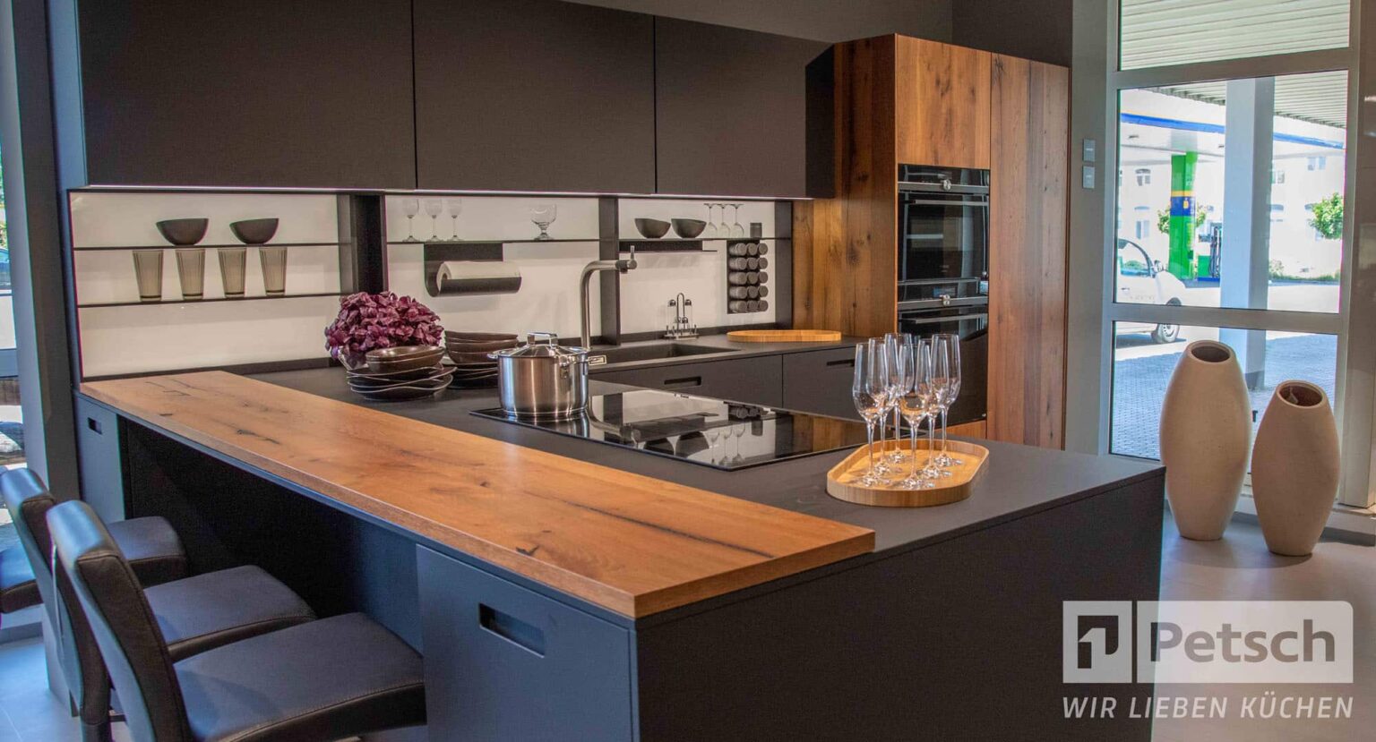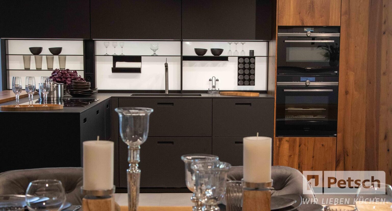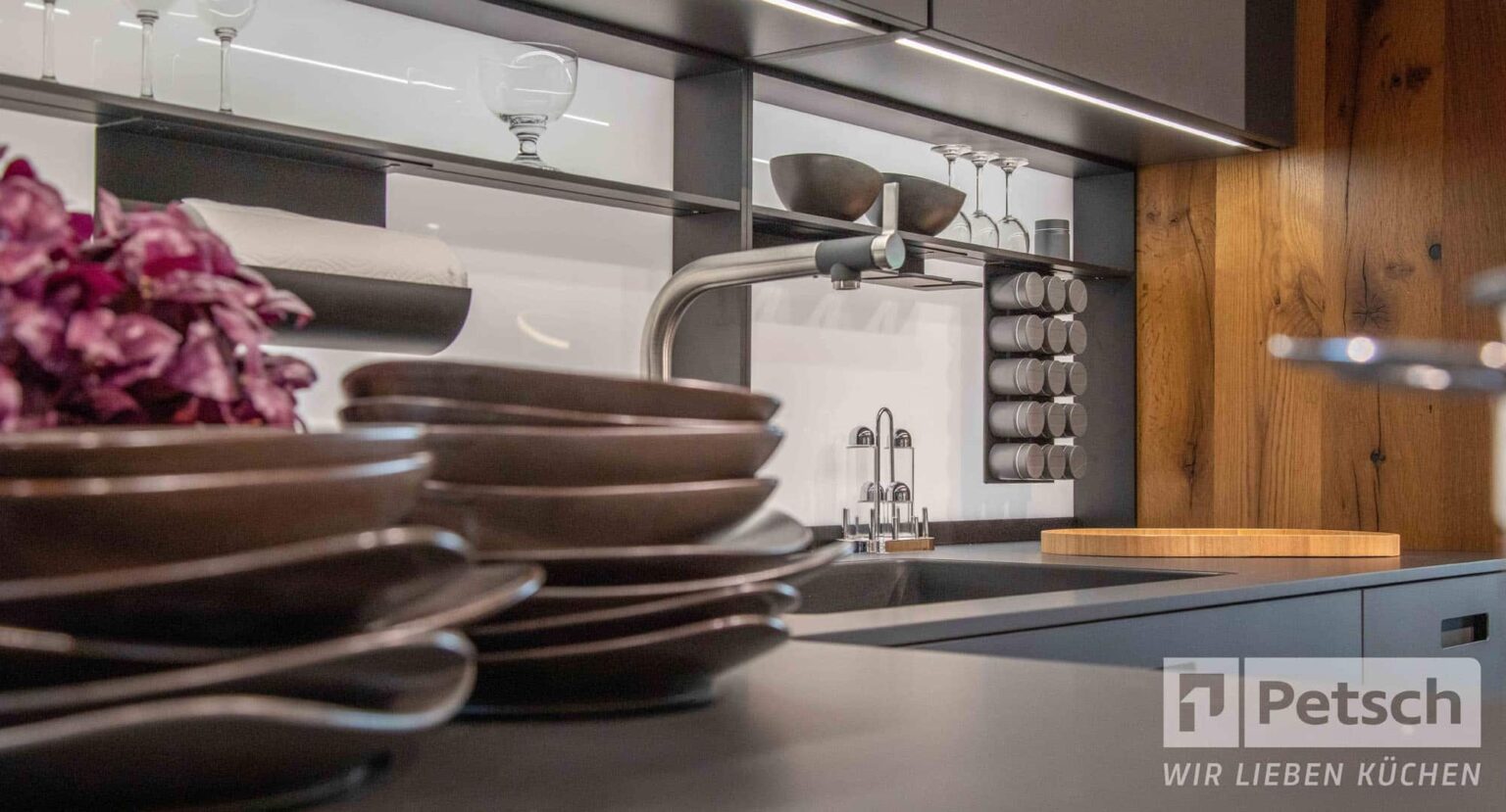 Diese wunderbare Küchenzeile ist ein Ausdruck davon wie sich Effizienz, Design und Ergonomie miteinander in Einklang bringen lassen, ohne dabei zu viel Platz vom vorhandenen Raum einzunehmen. Durch die L-Form der Küche werden effiziente Lauf- und Arbeitswege in der Küche gewährleistet, die durch ein weitreichendes Angebot an Küchenschränken und Stauraum vollendet wird. Innovative Wandregale sind…