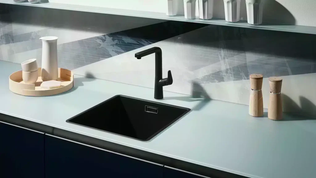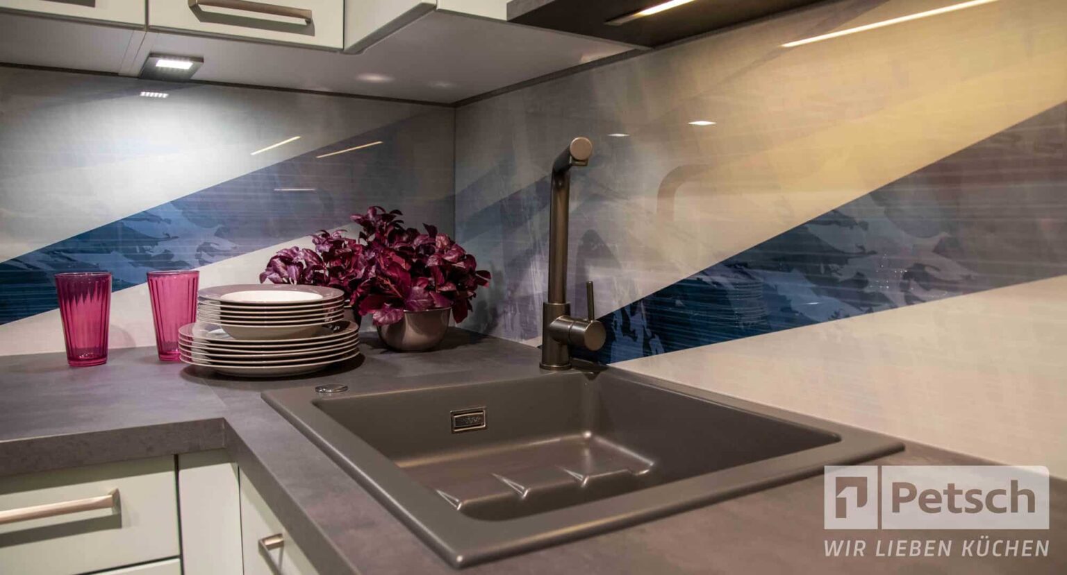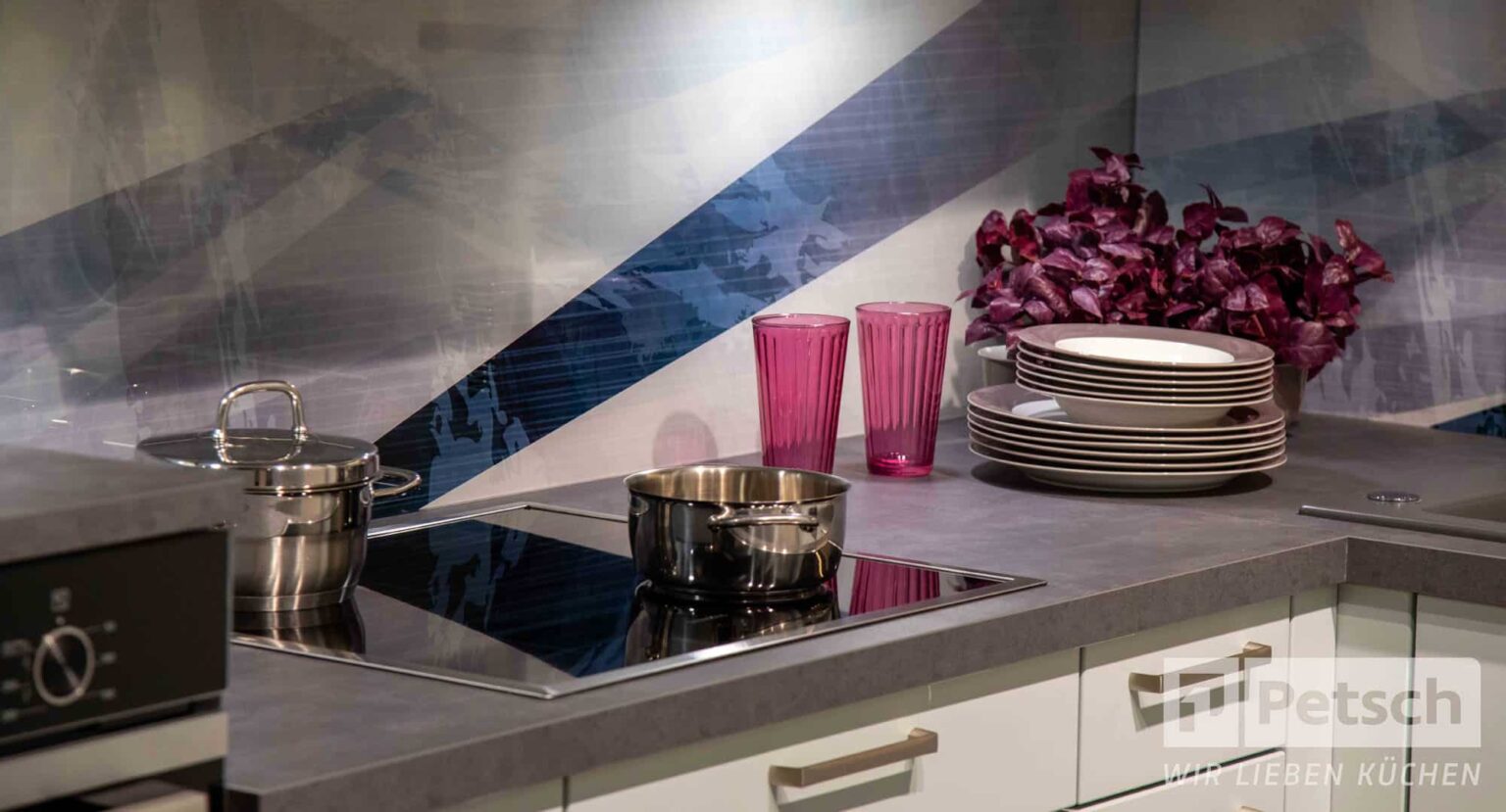 Diese kleine aber feine Ausstellungsküche in L-Form bietet alles und noch viel mehr und zwar auf kleinstem Raum. Kochfeld und Spüle sind so integriert das in den Zwischenräume eine optimale Arbeitsfläche zur Verfügung steht, um sich kreativ auszuleben. Gleichzeitig ist genug Platz eingeplant worden für einen Kühlschrank, Geschirrspüler und einen Backofen. Letzterer befindet sich sogar…