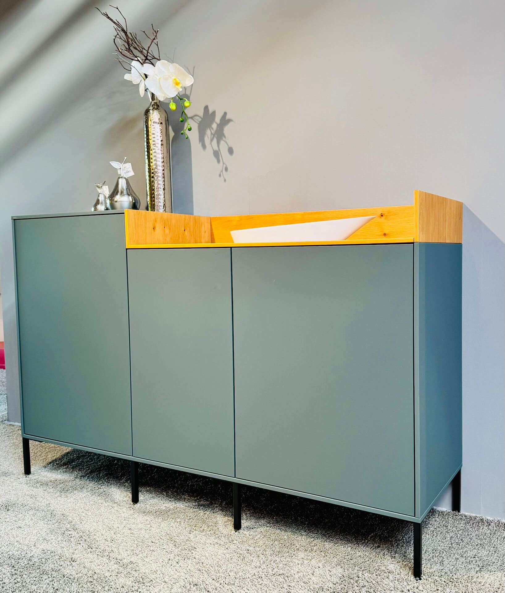 Diese exklusive Schüller Moderne Inselküche Kobaltgrün Samtmatt ist als Ausstellungsküche bei Küchen Petsch in Weißwasser/Oberlausitz erhältlich. Sie wurde mit höchster Sorgfalt geplant, präsentiert sich in neuwertigem Zustand und steht nun zu einem außergewöhnlichen Preis bereit.