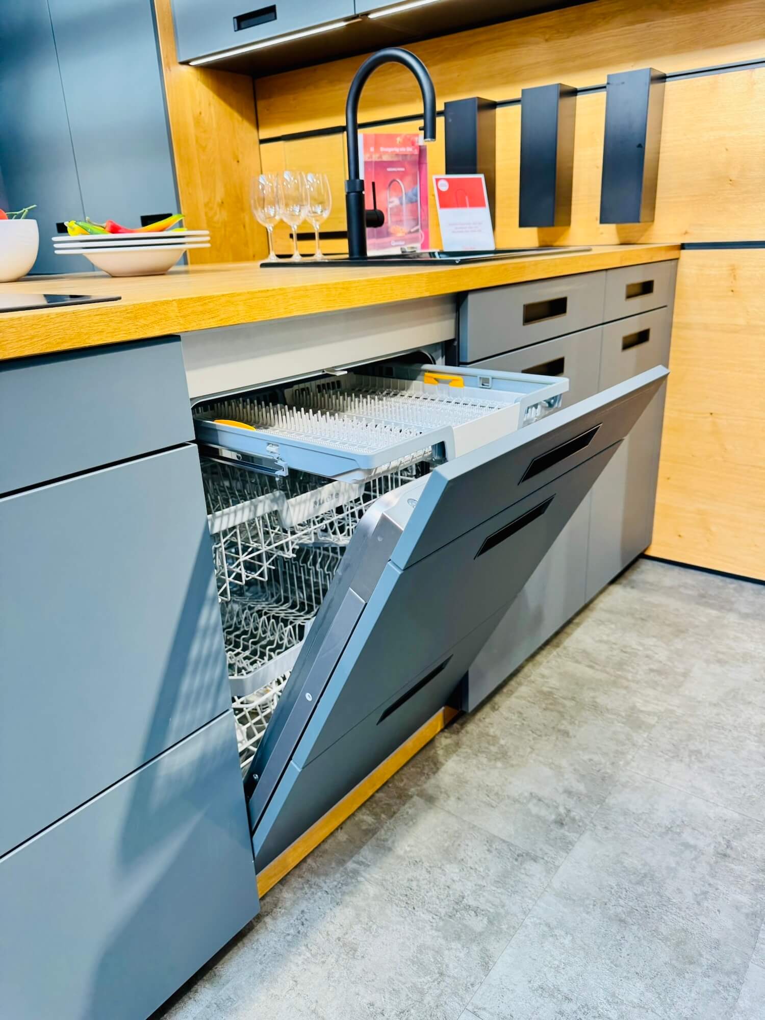 Auch bei den Elektrogeräten setzt diese Ausstellungsküche auf kompromisslose Qualität. Sämtliche Geräte stammen nämlich vom deutschen Premiumhersteller Miele.