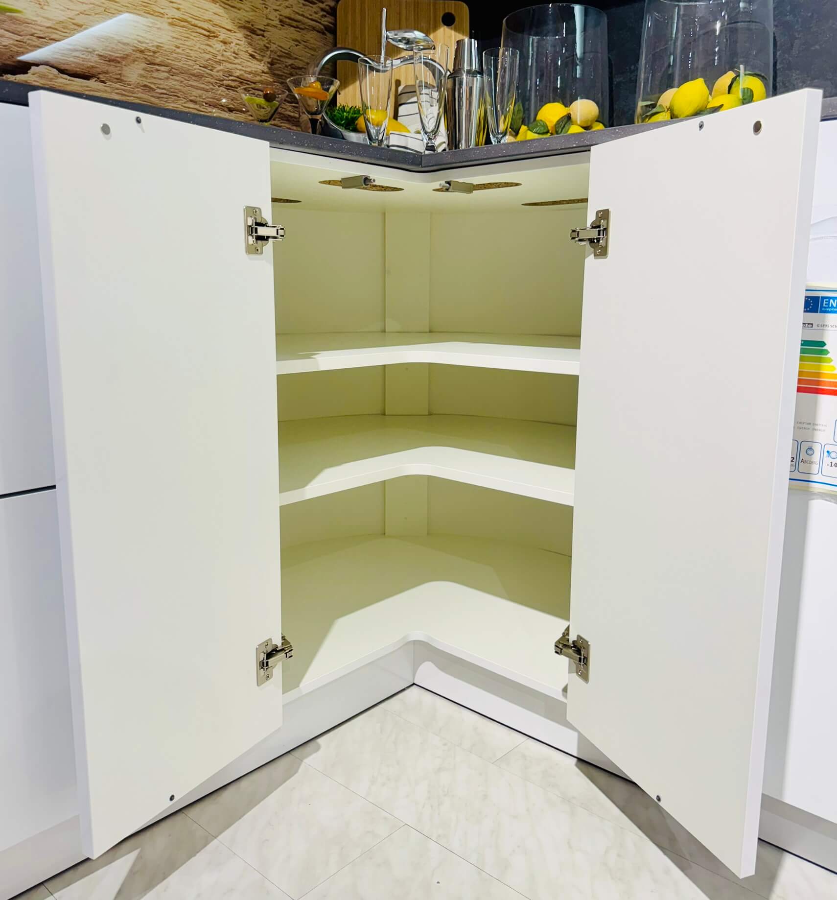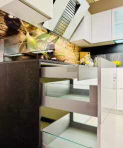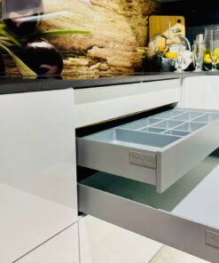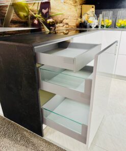 Die Schüller Moderne L-Küche mit Hochschrank Kristallweiß Hochglanz präsentiert sich in einem klaren, modernen Design, das durch die glänzenden Fronten in Kristallweiß und die hochwertigen Materialien besticht. Die Küche ist bei Petsch’s Küche Aktiv in Weißwasser/Oberlausitz als Ausstellungsküche verfügbar und bietet eine attraktive Gelegenheit, sich eine hochwertige Küche zu einem reduzierten Preis zu sichern.