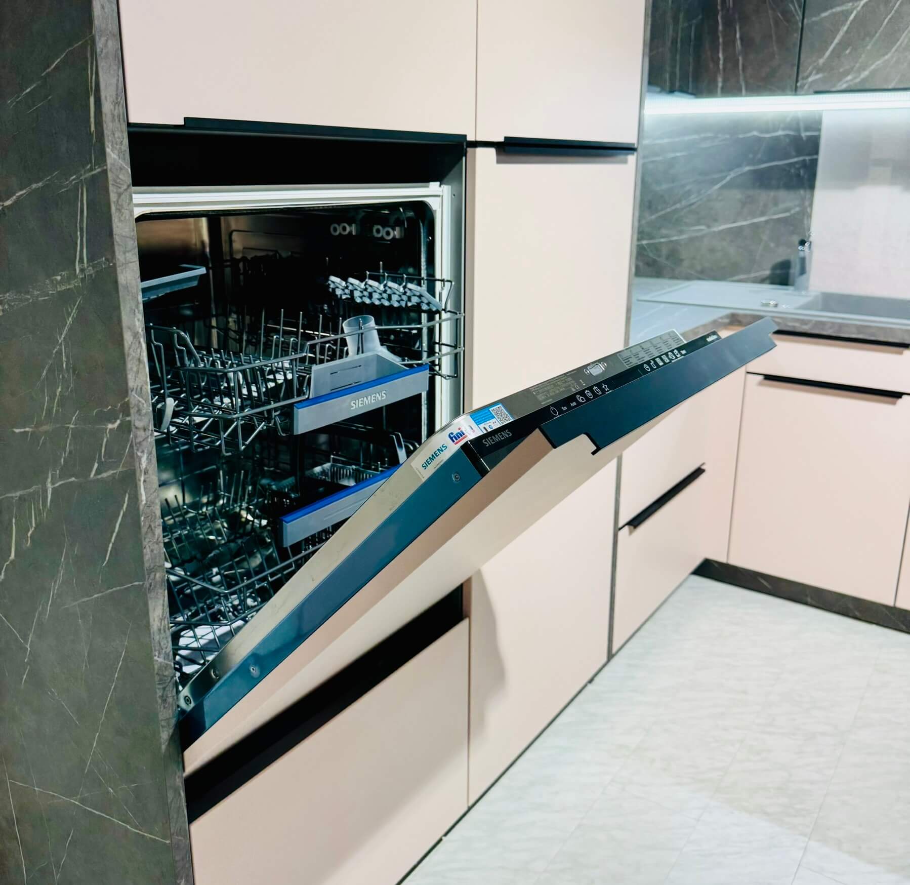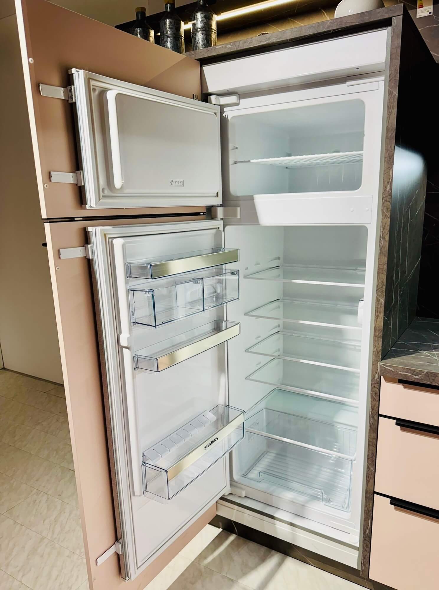 Kühlung und Lagerung übernehmen indes die Siemens Einbau-Kühl-/Gefrierkombination iQ300 KI26DA30, die Frische und Ordnung garantiert. Der Siemens Geschirrspüler iQ300 SN63H800BE (Energieeffizienzklasse: D) überzeugt mit Energieeffizienz und leiser Reinigung.