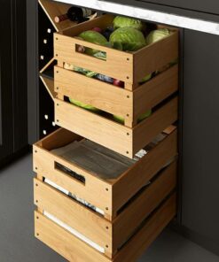 Ein Highlight der Schüller moderne Landhaus Inselküche sind die beiden Auszüge in Kistenoptik. Hier können Sie beispielsweise frisches Obst aus Ihrem Garten oder Gemüse lagern. Daneben können Sie durch die beiden Kreuzeinteilungen Ihre Lieblingsgetränke unterbringen.